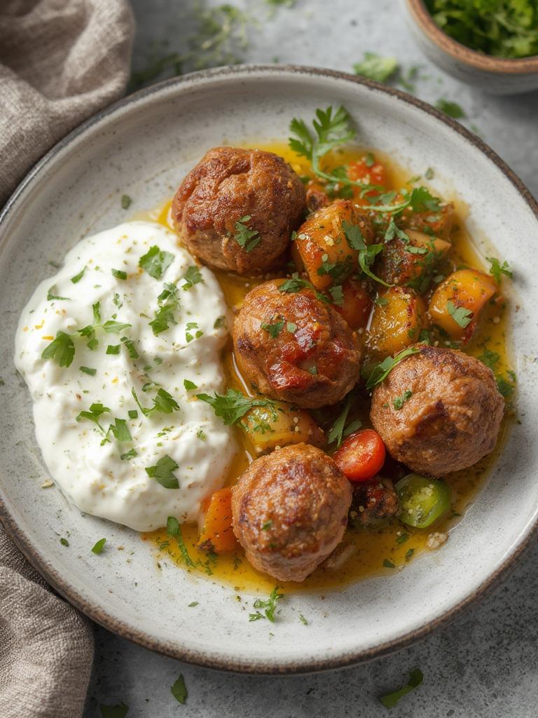 These meatballs pair well with rice, quinoa, or a fresh Greek salad.