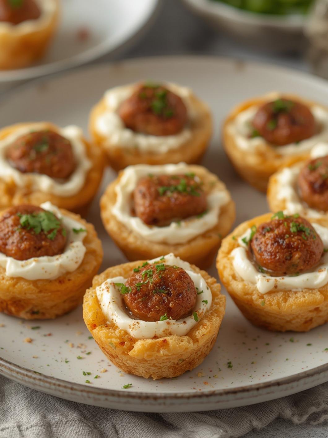 5. Fill the Pastry Cups: Spoon the sausage and cream cheese mixture into each pastry cup, filling them generously.