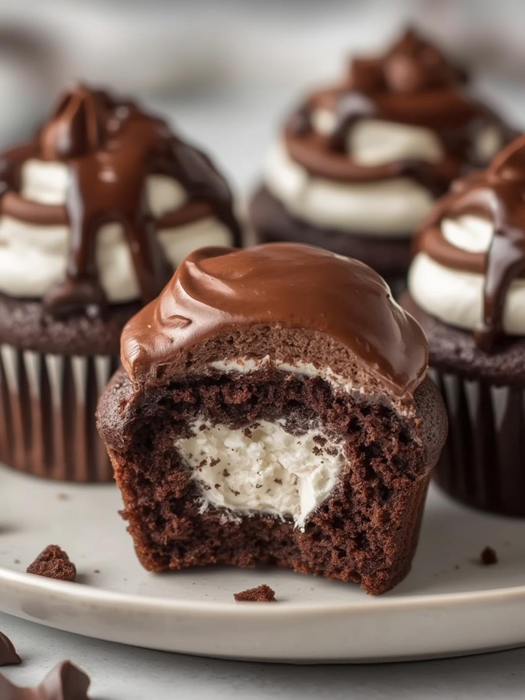 Easy Whipped Cream-Filled Chocolate Cupcakes With Chocolate Ganache Frosting in 30 Minutes